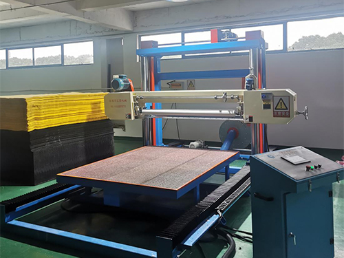 本機主要是把塊狀泡綿切成薄片,采用自動數(shù)字控制,根據(jù)需要切割的厚度和泡綿的密度,通過控制箱設定數(shù)值。工作臺采用不銹鋼板并  帶吸風裝置。為了防止切割的泡綿滑動,可加壓輥,操作簡便,切割準確。